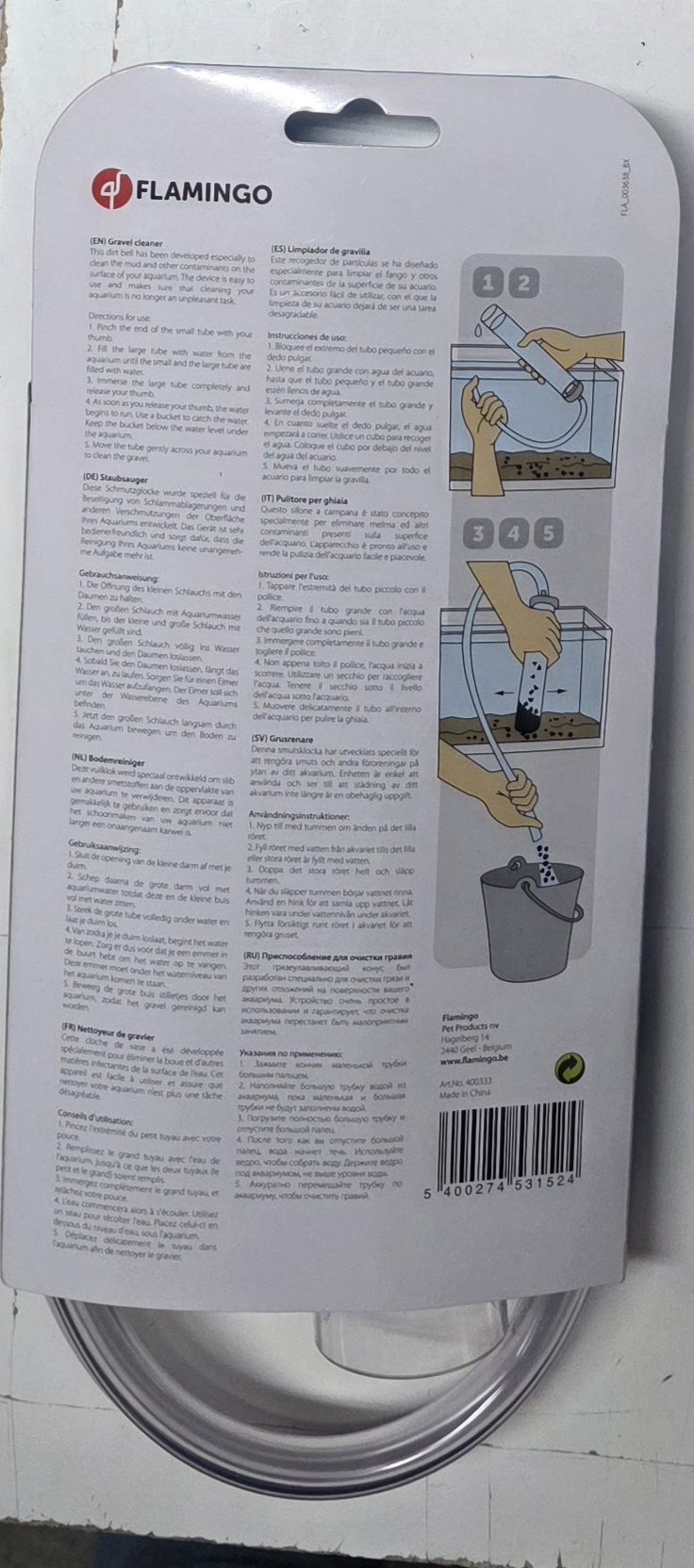 Sesalec akvarijskega mulja Flamingo je praktičen pripomoček za enostavno in učinkovito čiščenje dna akvarija. Z njegovo pomočjo odstranite mulj, ostanke hrane in druge nečistoče, ki se nabirajo med peskom, brez da bi pri tem poškodovali podlago ali vznemirjali ribe.