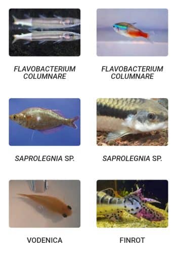 Gniloba plavuti: nastane zaradi intenzivnega hranjenja/razmnoževanja. Če se ne zdravi, se lahko okuži s sekundarno okužbo, kot je »gliva«;