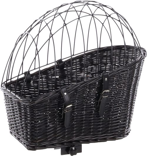 Pletena košara za vašega ljubljenčka, ki se pritrdi na prtljažnik kolesa zadaj.