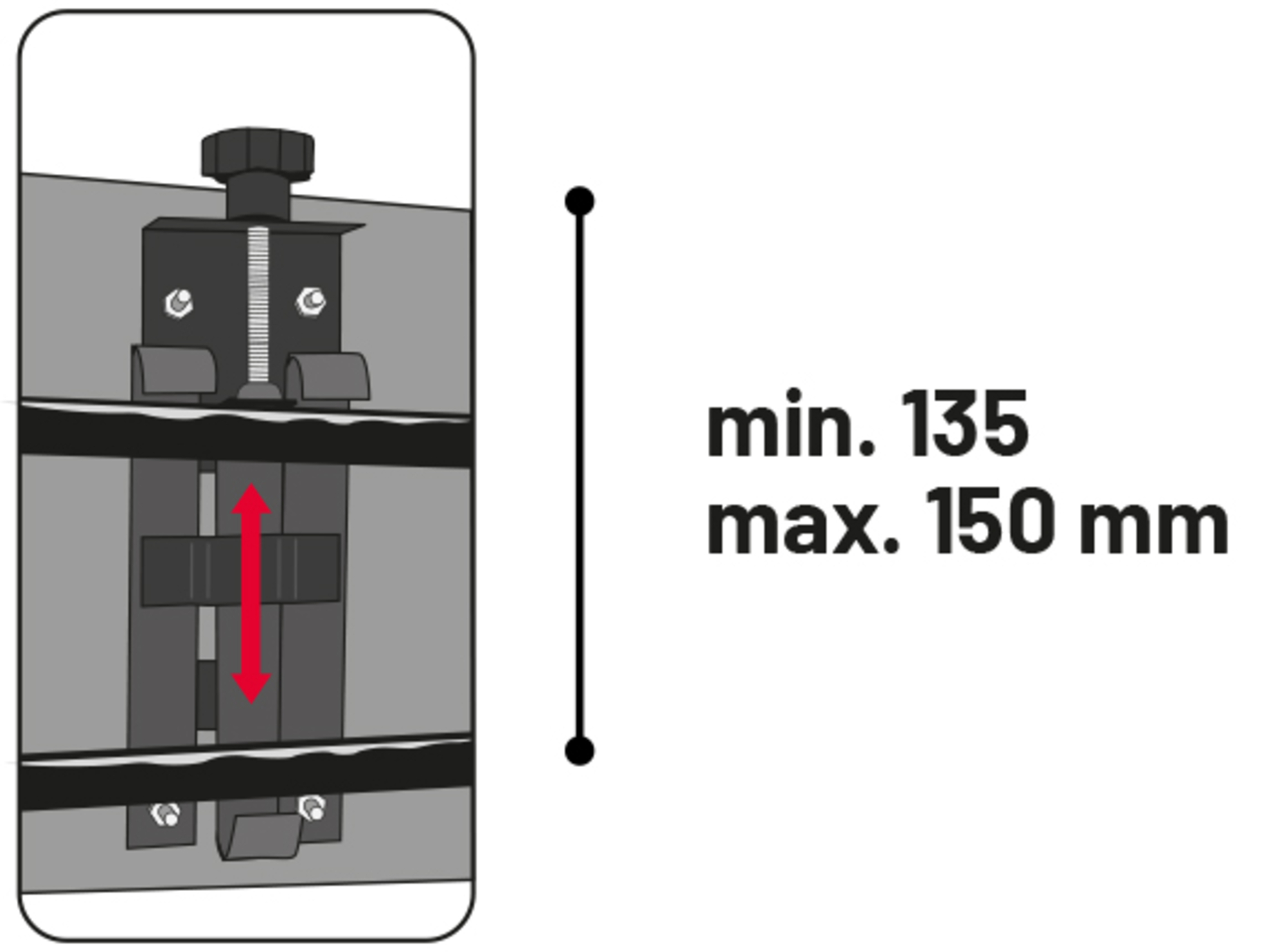Enostaven za montažo pritrdilni sistem z razponom vpenjanja od 115 do 144 mm