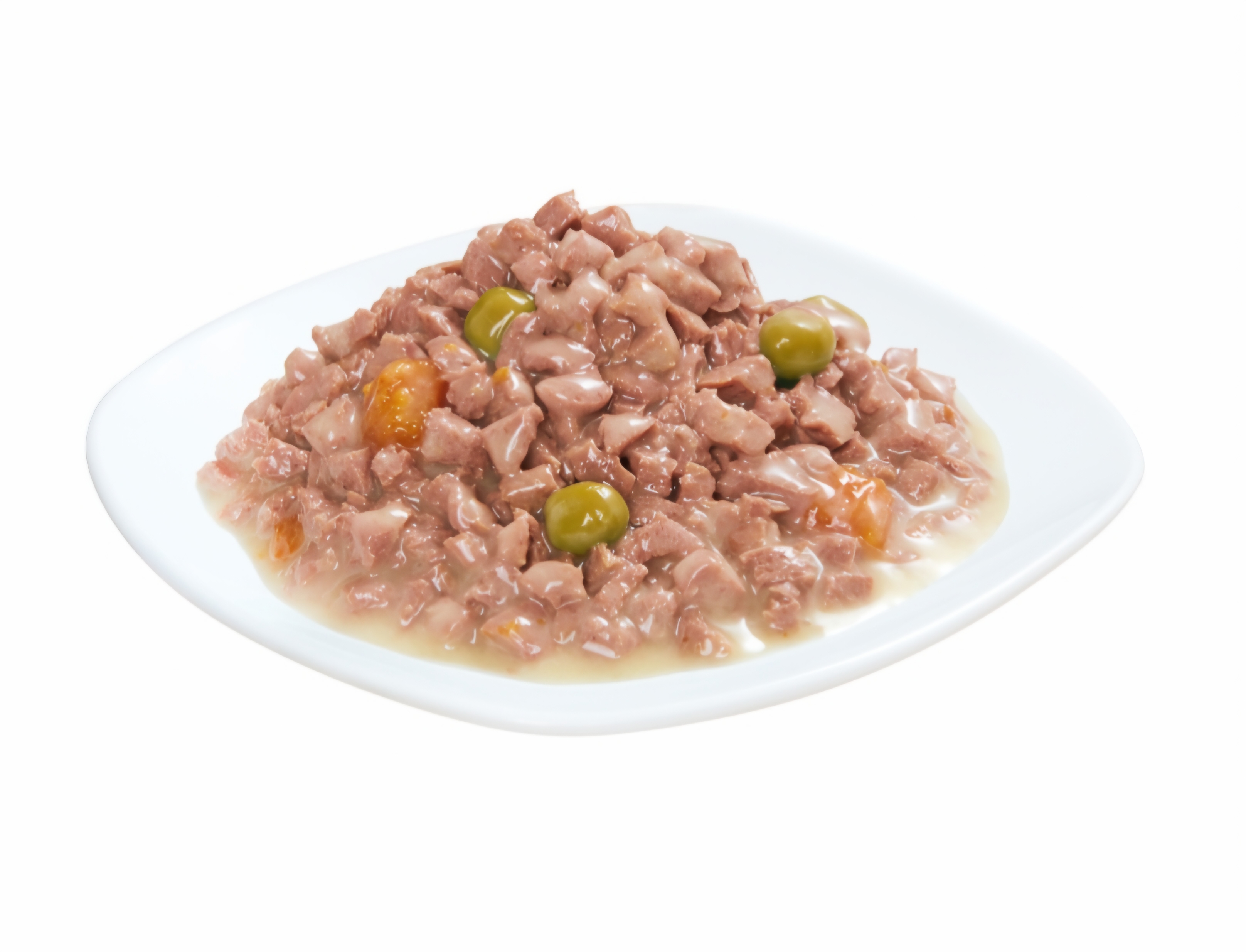Meso in živalski stranski proizvodi 55 % (govedina, svinjina in perutnina, 5 % piščanec), zelenjava (2 % korenje, 2 % grah), rastlinski stranski proizvodi (tapiokin škrob), minerali, mleko in mlečni proizvodi, inulin