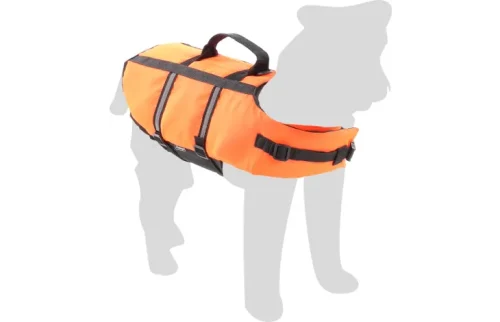 Plavalni jopič za psa med plavanjem pomaga vašemu psu, da drži glavo nad vodo. Jopič je opremljen z ročajem, s katerim lahko   psa dvignete iz vode, ima močno oranžno barvo, za boljšo vidljivost ter odsevne trakove.