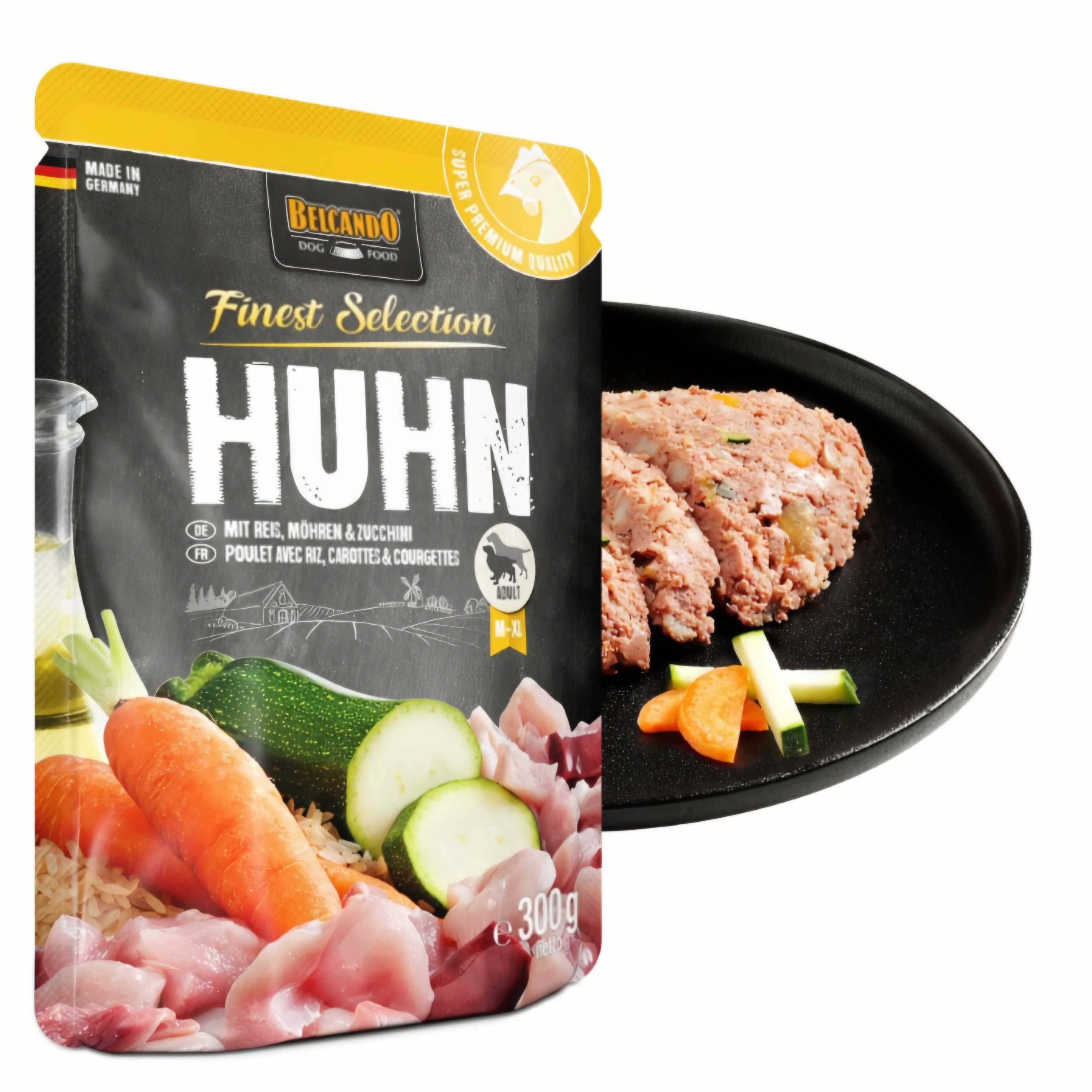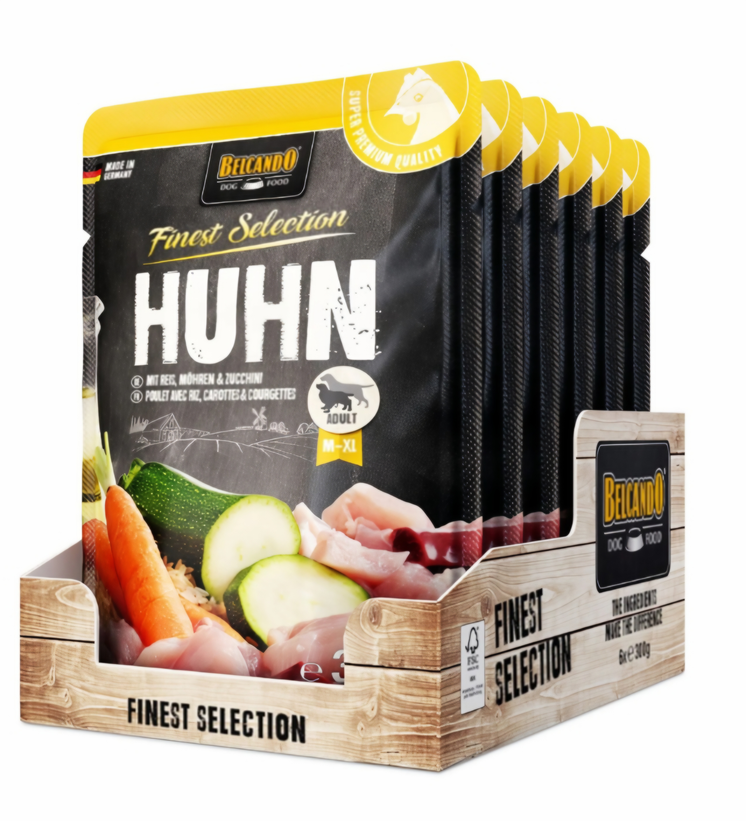 Vse o piščancu: Psi vseh starosti obožujejo piščanca! Zaradi blagega in prijetnega okusa je še posebej primeren za izbirčne in občutljive jedce. V kombinaciji z rižem, korenjem in bučkami postane ta recept za perutnino uravnotežen, lahko prebavljiv obrok, poln esencialnih hranil in poslastica za brbončice vašega psa. Še ena posebnost BELCANDO Finest Selection: mehka in sijoča ​​dlaka zahvaljujoč dodatnemu odmerku žafraničnega olja.
