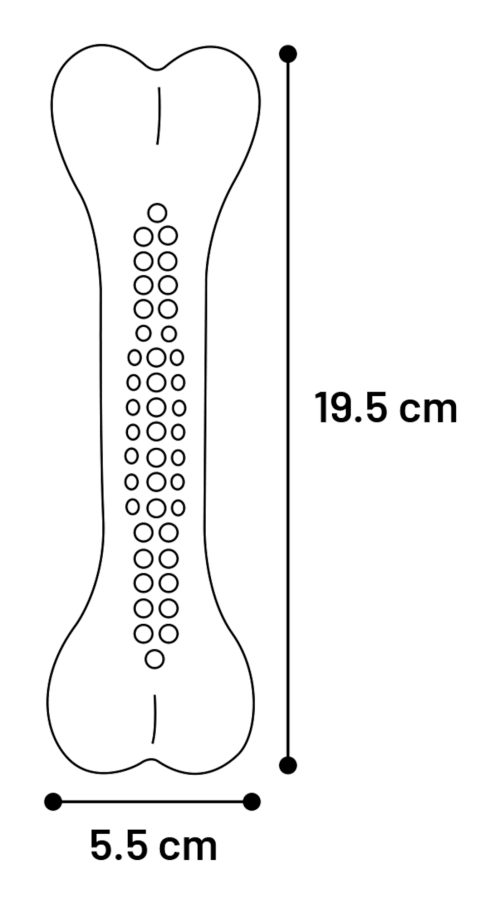 Med žvečenjem se na najlonasti igrački tvorijo drobni utori, ki delujejo kot naravna zobna ščetka – odstranjujejo obloge, zobni kamen in masirajo dlesni.
