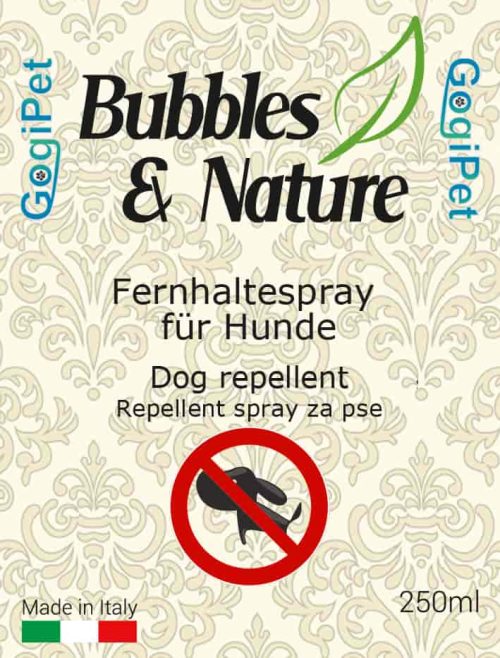 GogiPet sprej za odganjanje psov Bubbles & Nature je primerni za domačo in profesionalno uporabo. Na evropskem tržišču je prisoten več kot 15 let. Pakiran je v prozornih plastenkah zato, ker želi proizvajalec pokazati in ne prikrivati strukturo izdelka. Vsak izdelek ima javno prikazano surovinsko sestavo.