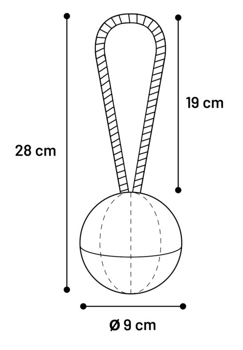 Igrača za pse žoga trda z vrvjo gladiator fi-9cm/19cm vrvi Flamingo