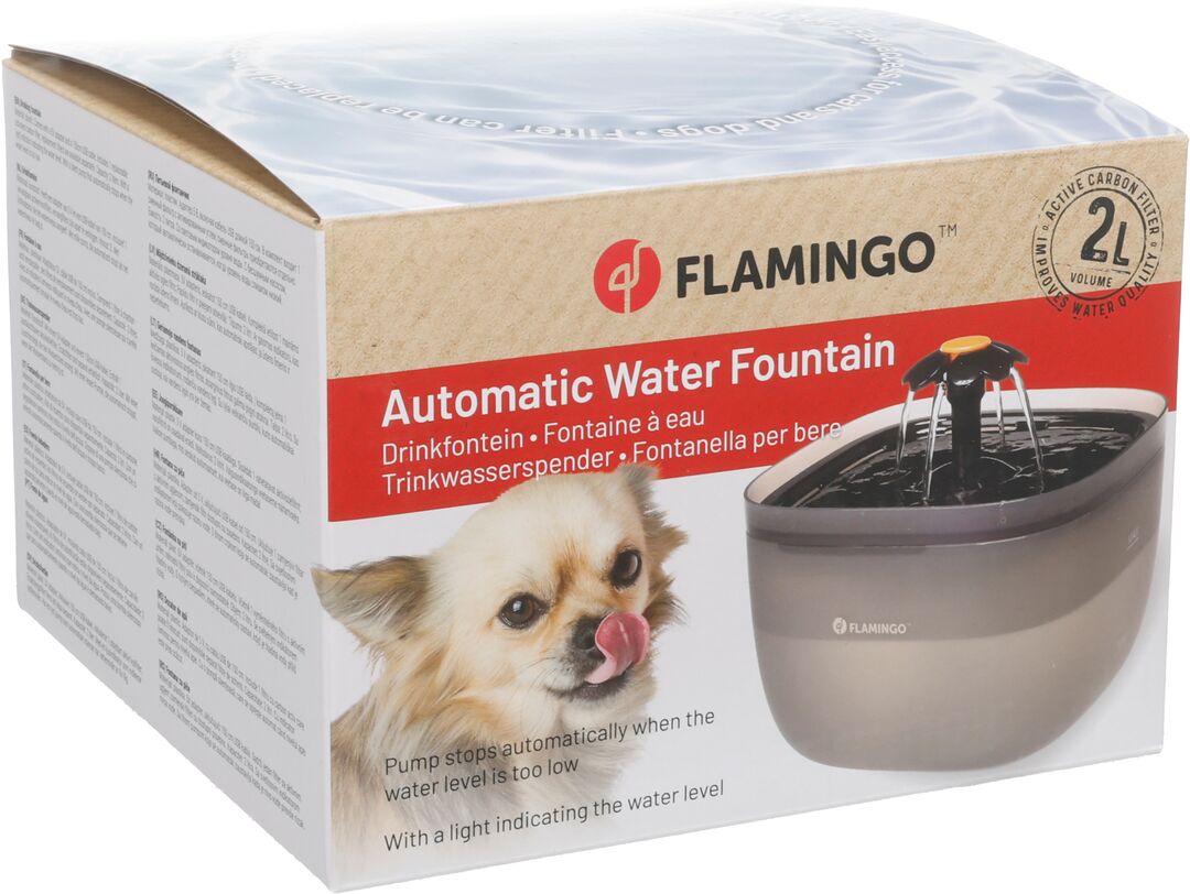 Flamingo fontana za vodo cvet črna 2 litra-Poskrbite, da bo vaš kosmati prijatelj vedno imel na voljo svežo in filtrirano vodo s sodobno pitno fontano Cvet. Fontana je izdelana iz kakovostne plastike in ima eleganten črn dizajn, ki se lepo poda v vsak dom.