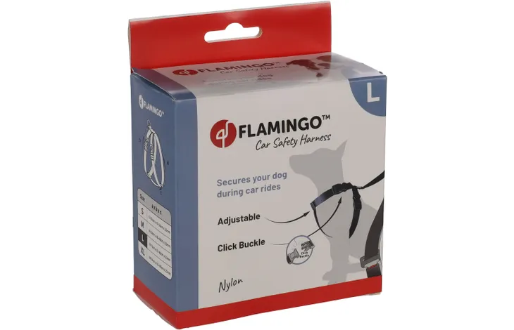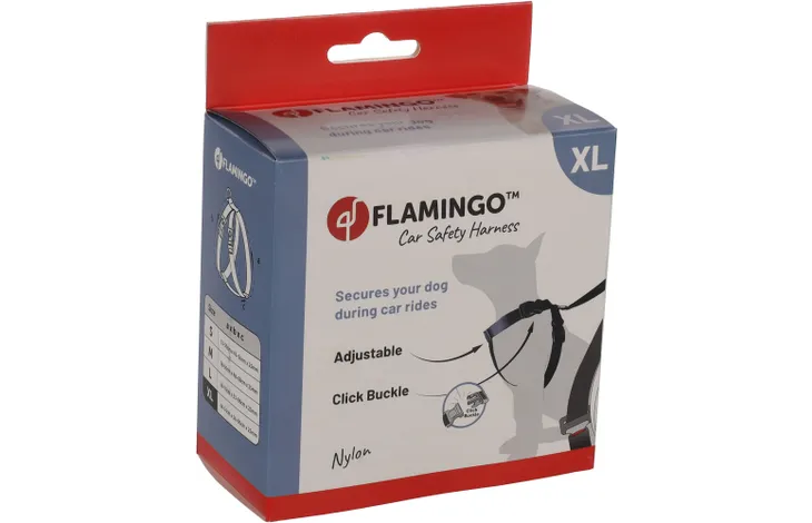 Varnostna oprsnica za v avto Flamingo nudi zanesljivo in udobno pritrditev v avtu za večjo varnost med vožnjo. Na voljo je v velikostih S-XL,primernih za različne pasme.