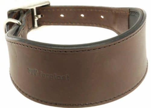 Ovratnica za psa usnjena široka rjava za hrte