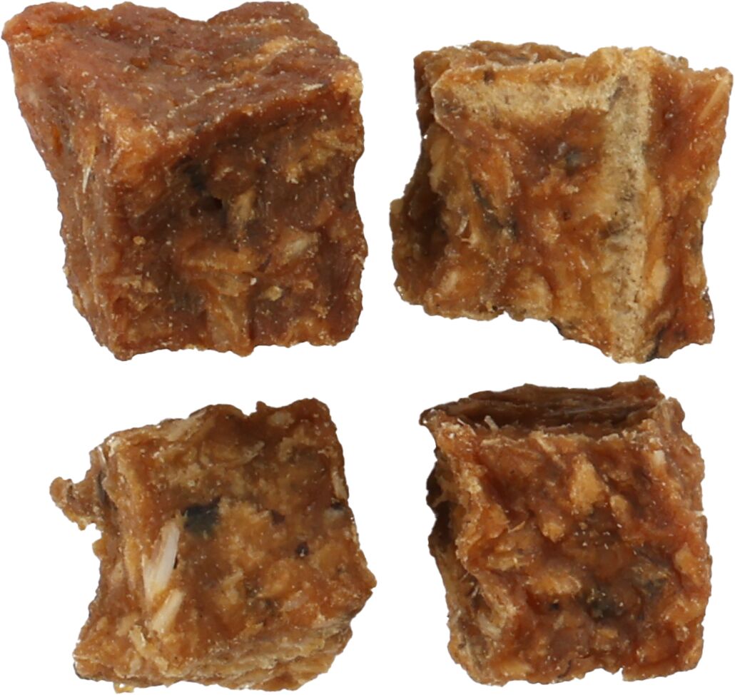 Hapki priboljški za pse kocke s trsko in lososom 75g Flamingo-Razvajajte svojega kosmatega prijatelja s temi okusnimi kockami Nature Snack s trsko in lososom! Brez glutena, brez sladkorja in polne omega 3 in 6 maščobnih kislin za sijočo dlako in srečno srce.