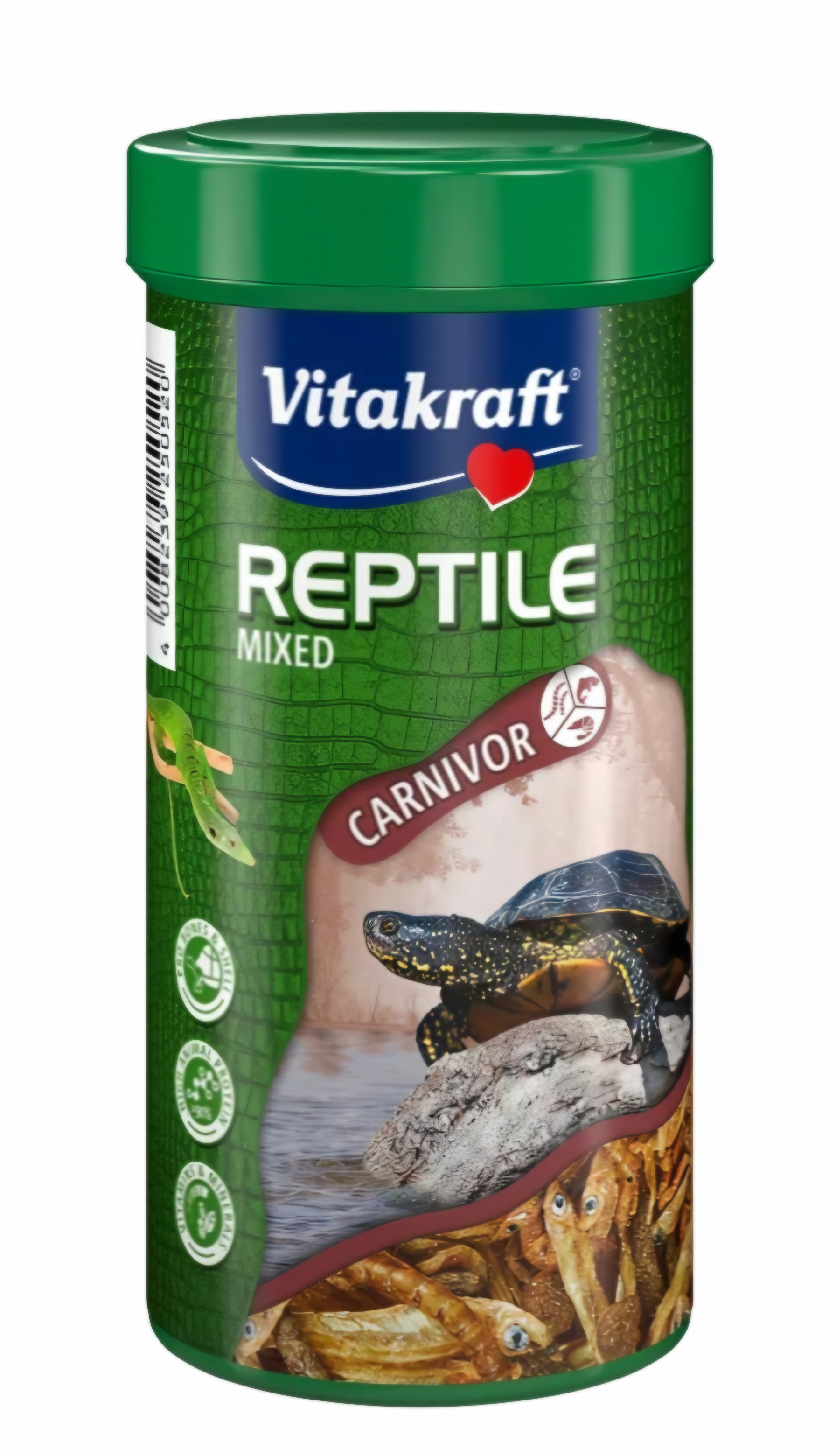Vitakraft hrana za želve carvivore mix 250ml- Ta mešanica beljakovinsko bogatih rakov je zdrava naravna hrana za številne želve in druge mesojede plazilce ter prava poslastica med obroki. Ta okusna mešanica se ponaša z visokim deležem živalskih beljakovin in dragocenimi naravnimi minerali. Primerna je tudi kot prigrizek in prehransko dopolnilo za vsejede plazilce!