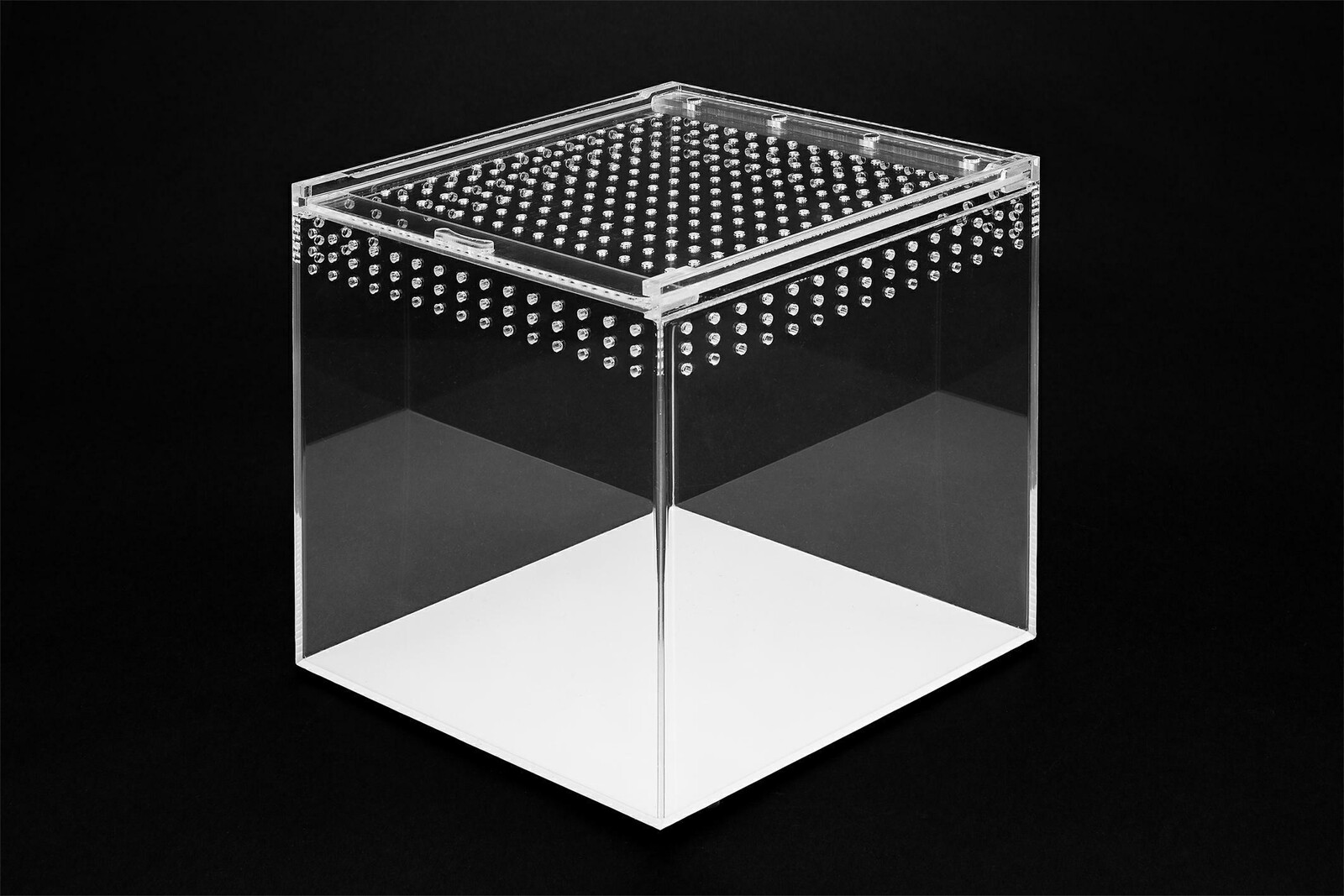 Lahek in praktičen akrilni terarij predstavlja odlično alternativo klasičnim steklenim terarijem. Namenjen je predvsem za insekte, pajke, tarantele in druge nevretenčarje, primeren pa je tudi kot začasni bivalni prostor za manjše plazilce in dvoživke. Zaradi kompaktnih dimenzij je idealen za vzrejo, opazovanje, karanteno ali transport manjših živali.