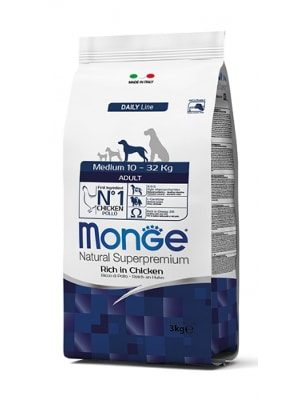 Monge Dog Adult Medium piščanec - popolna in uravnotežena hrana za pse srednje velikih pasem, z običajno telesno aktivnostjo.